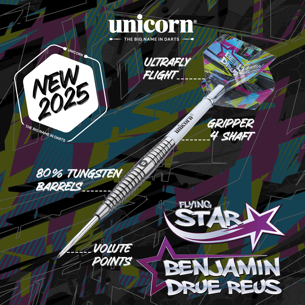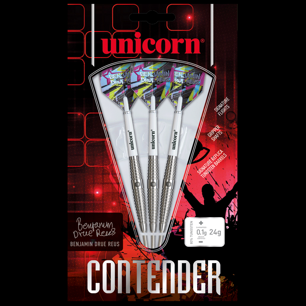 Benjamin drue Reus 24 g Contender Unicorn lotki dart steeltip