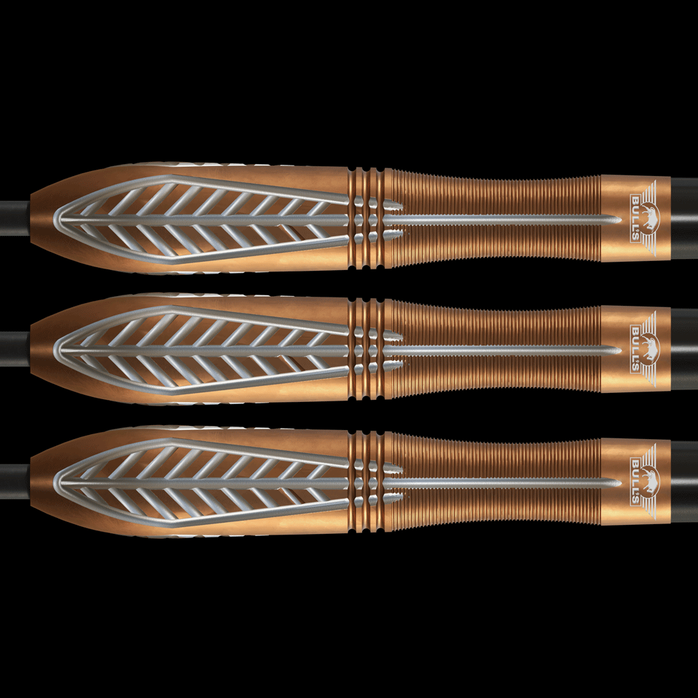 Dzięki charakterystycznemu kształtowi, udoskonalonym strefom chwytu i stylistyce inspirowanej epoką brązu, lotki Bull's Bronzo Nova 90% zapewniają stabilny i wszechstronny rzut, który dopasowuje się do Twojego chwytu.