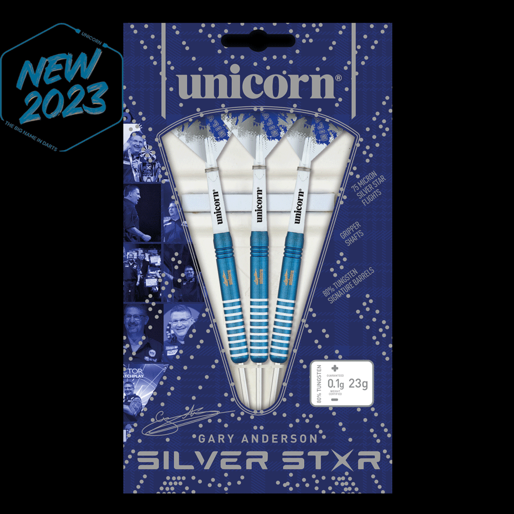 Gary Anderson Silver Star Blue 21 g Unicorn lotki dart steeltip