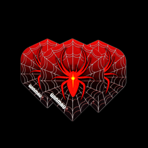 Winmau i jego bardzo populary model piórek o grbości 75 mikronów z motywem pająka na czerwonym tle.
