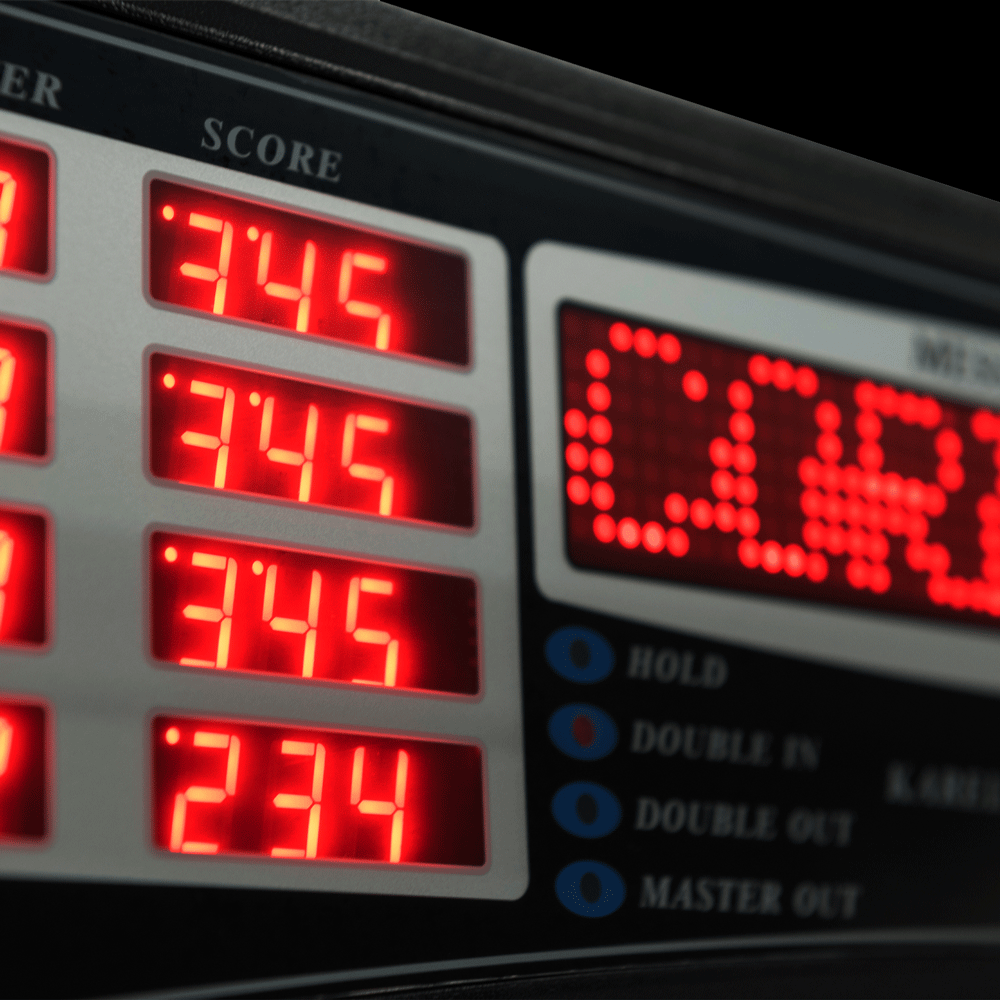 Podświetlane wyświetlacze LED – czytelne wyniki nawet przy słabym oświetleniu. 4 wyświetlacze prezentujące wynik, duży wyświetlacz kolejki i efektów oraz wyświetlacze prezentujące postęp kolejek w trakcie lega.